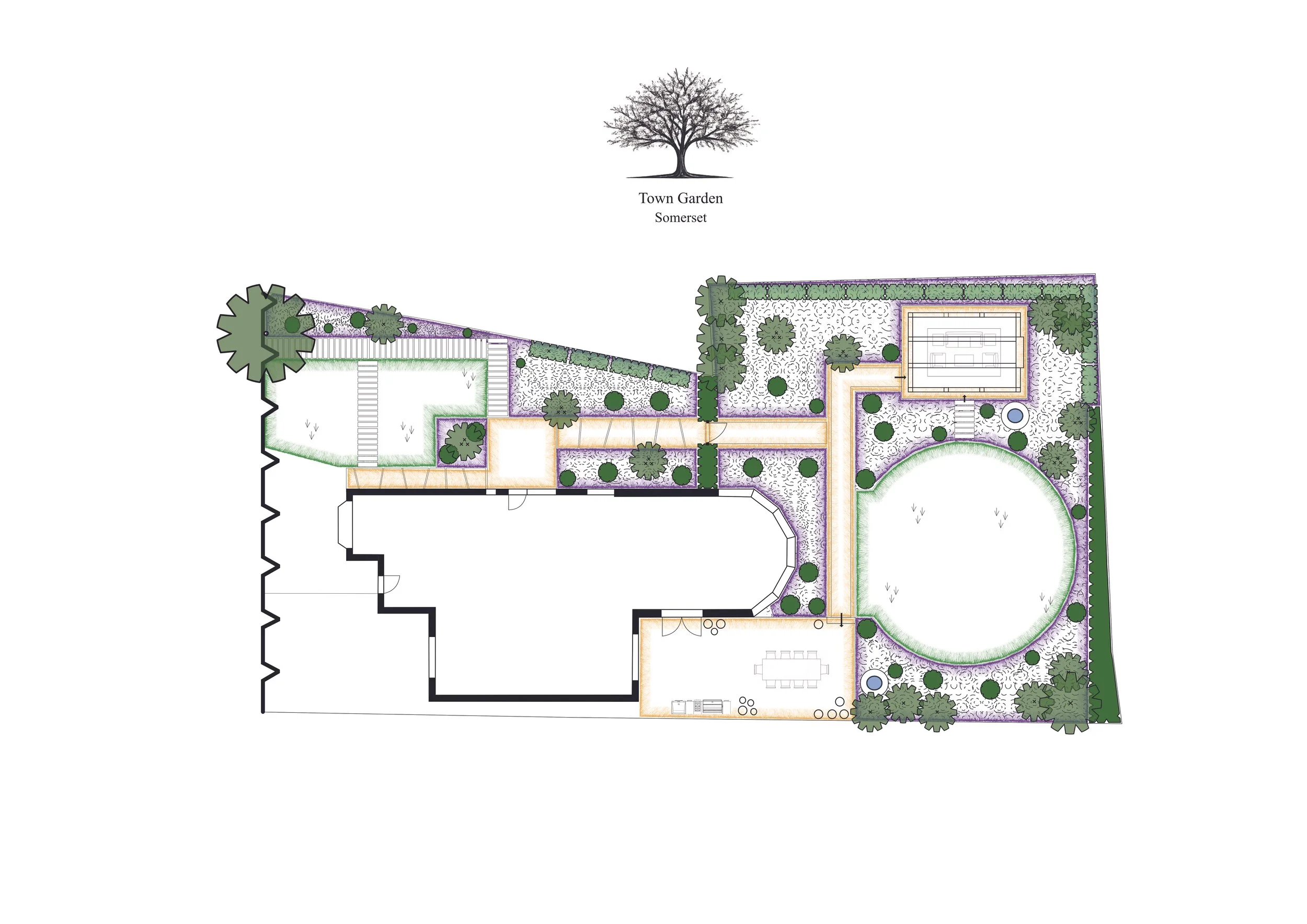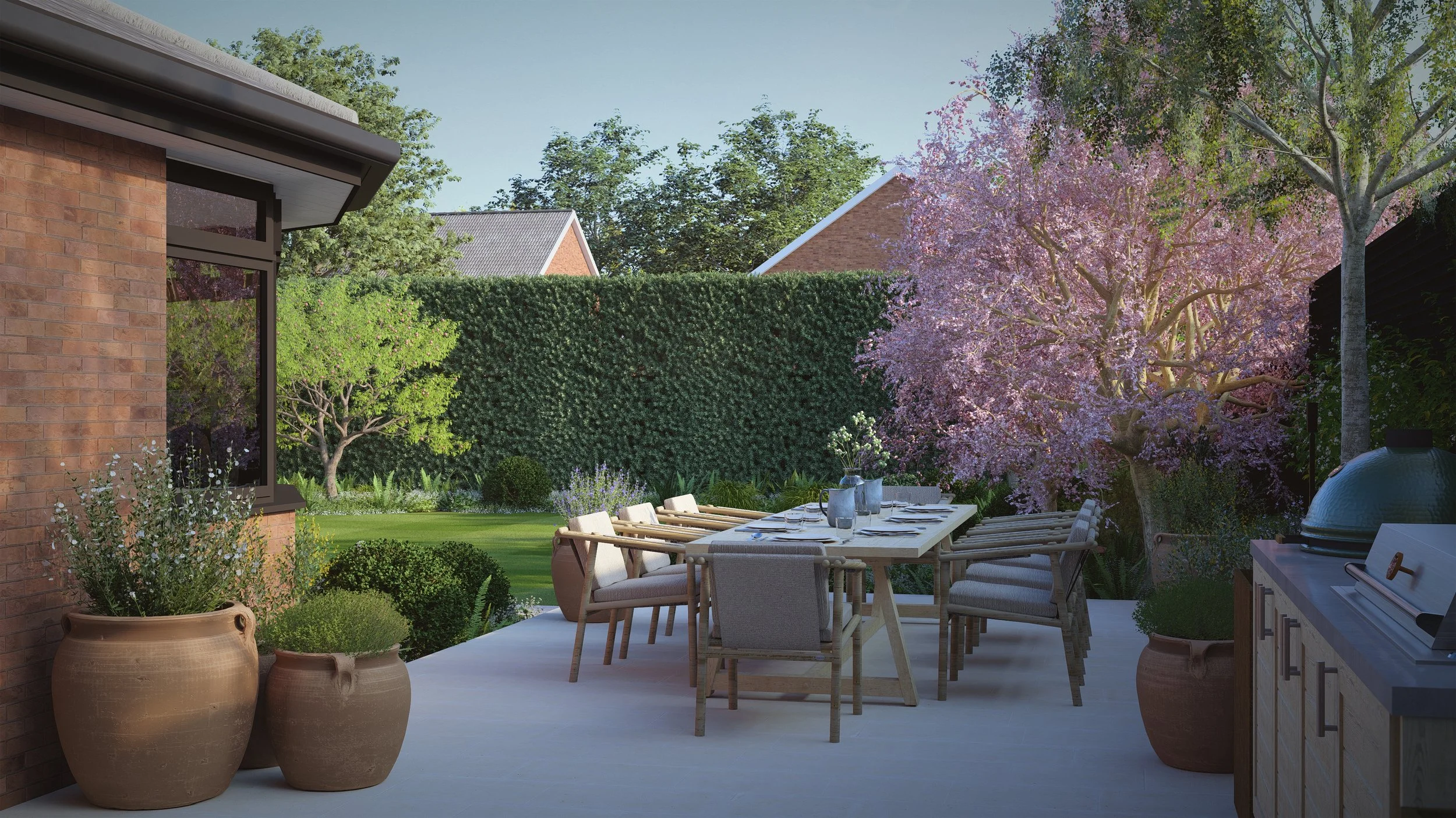 This Concept Design Creates an immediate, high-impact established garden that maximises privacy while remaining low maintenance. Introduces seasonal colour and interest without intensive upkeep. While providing distinct outdoor zones: a secluded and relaxing seating area, a dining terrace, open lawn and a private side garden.